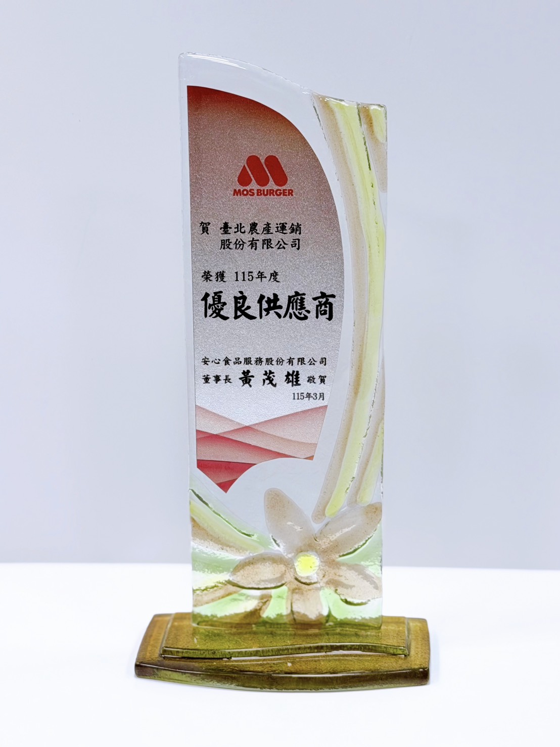 臺北農產運銷股份有限公司(以下簡稱北農)於本(3)月17日受邀出席摩斯漢堡35週年慶祝大會「廠商共榮頒獎典禮」,由總經理吳芳銘代表獲頒「廠商共榮獎」。現場亦設有感恩市集,北農同步參與設攤,與合作夥伴共同見證長期合作成果,展現攜手農友深耕在地、穩定供應優質農產品的努力與成果。