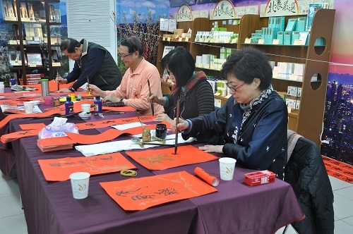 廣受同仁喜愛的春聯發送活動今年同樣佳評如潮,2月3日上午吳朝滄理事長帶領鬯盧書法協會的10名書法家,分別在本公司五樓和農的傳人門市揮毫,提供公司同仁和民眾能近距離感受現場揮毫的書法之美,以及各式春聯自由索取,現場還可挑選吉祥語彙請書法家書寫,發揚中華傳統文化外也散播春節喜氣。