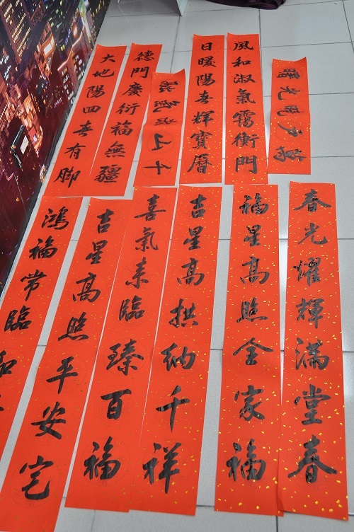 新年張貼的春聯是由桃符演變而來,最初目的是為了驅除惡鬼,現在則改成用紅紙書寫,並帶有吉祥的涵意,過去一年內國際間大事不斷,國內也發生多件重大食安問題,在這新的一年伊始藉由發送春聯來散播吉祥福氣,期望新的一年裡平安如意,實是別具意義。